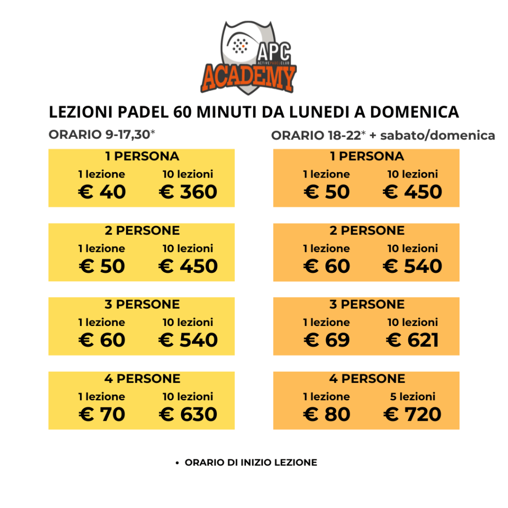 Gli istruttori della nostra APC Padel Academy sono a vostra disposizione per lezioni individuali e multiple, corsi collettivi e pacchetti su misura.