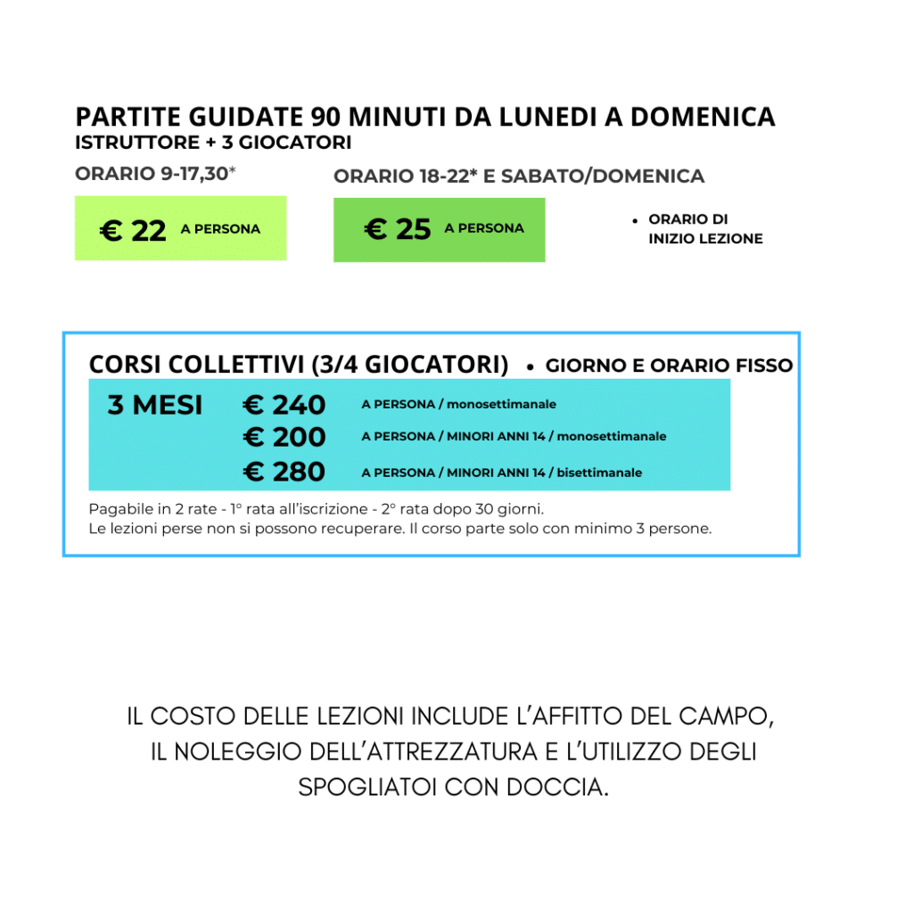 - DOPO LA PRIMA LEZIONE, E' RICHIESTO IL CERTIFICATO MEDICO NON AGONISTICO.